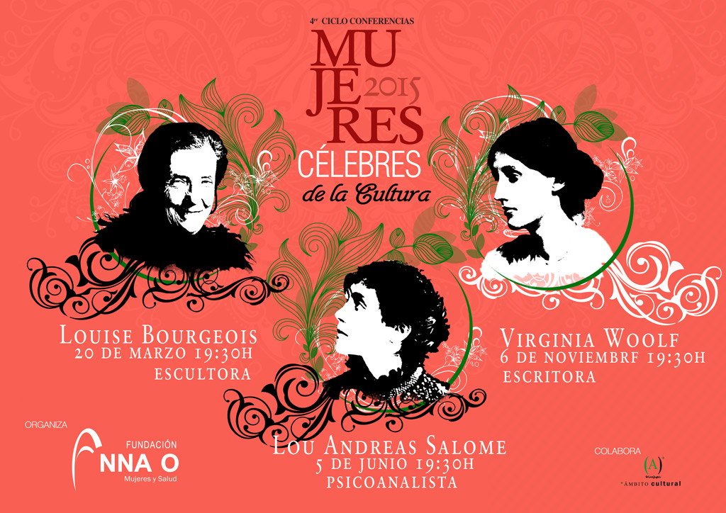 Finalizado el ciclo 2014 con la conferencia sobre la psicoanalista Françoise Dolto, el equipo de Fundación Anna O. encargado de diseñar y elaborar la programación de actividades ha presentado el cartel de ponencias para la edición de 2015. En esta ocasión, las tres mujeres elegidas para realizar un análisis de su vida y obra son la escultora Louse Bourgeois, el 20 de marzo. La psicoanalista Lou Andreas Salome, el 5 de junio y por último la escritora británica Virginia Woolf.
