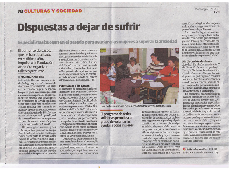El aumento de casos, que se han duplicado en el último año, impulsa a la Fundación Anna O a organizar talleres gratitos